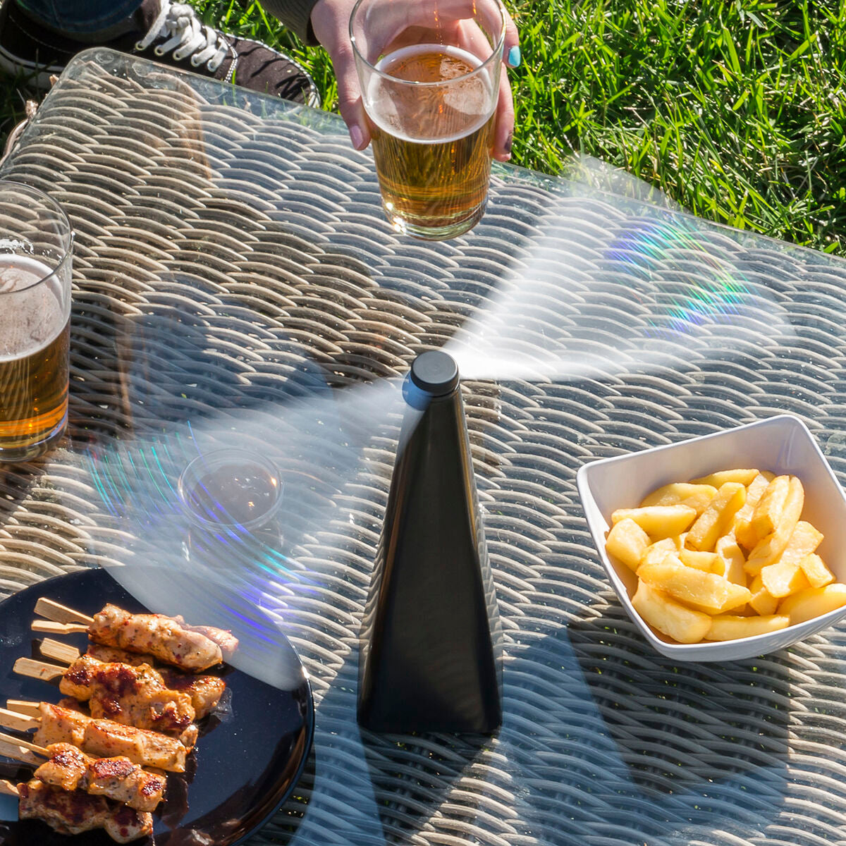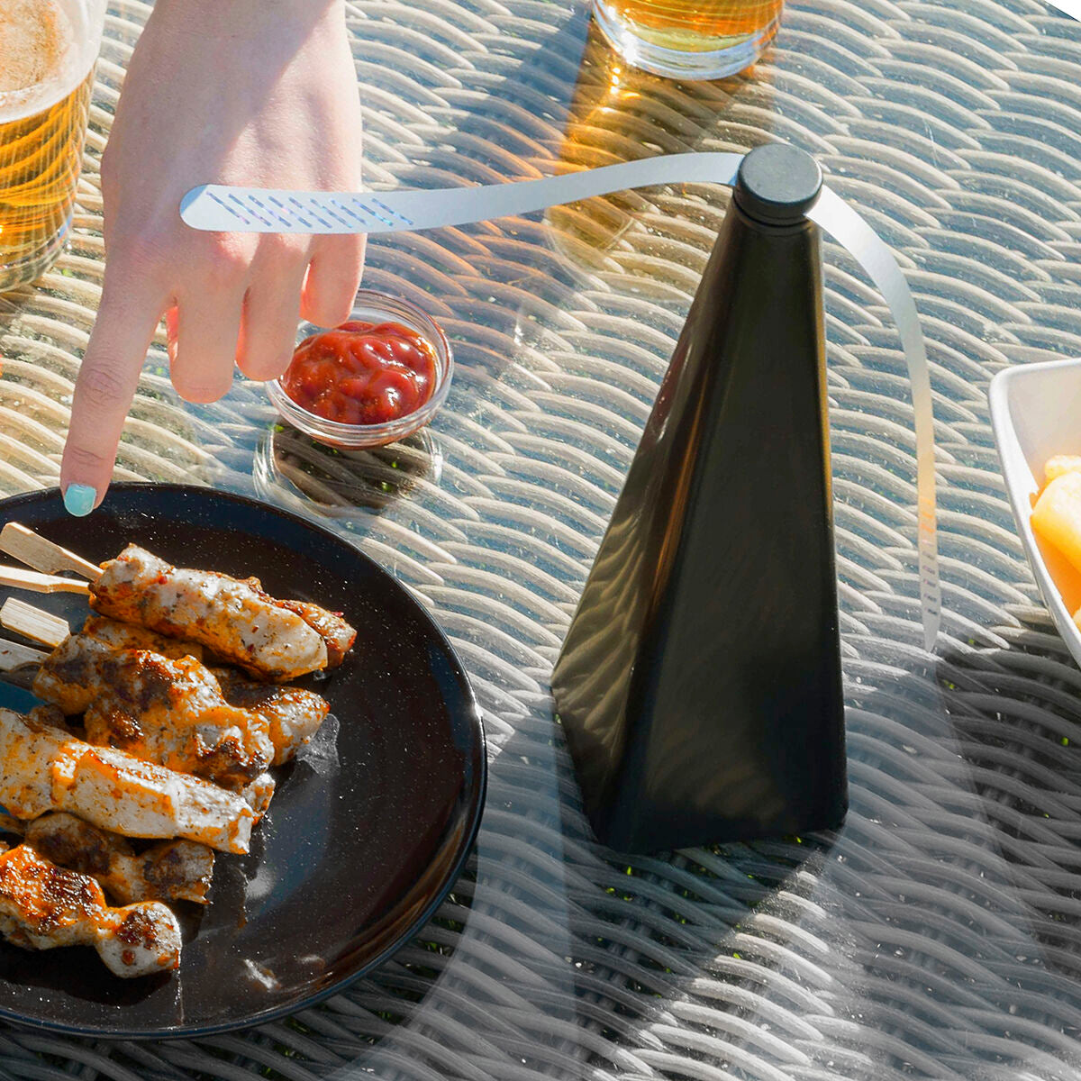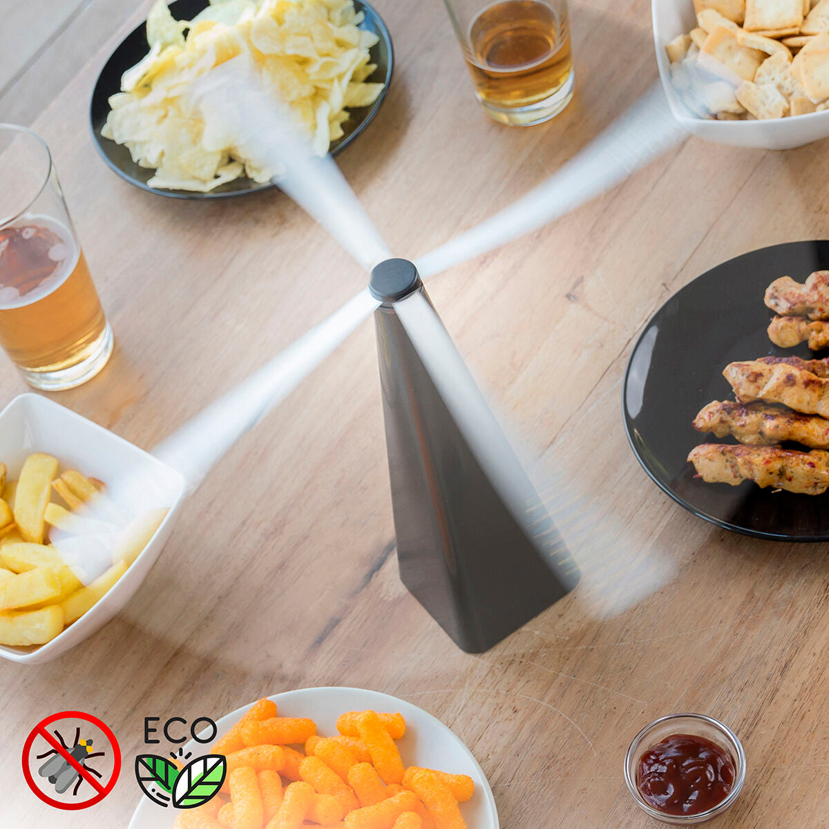 Un anti-mouche d’origine, idéal pour repousser les mouches gênantes de façon simple, propre et efficace. Il peut être utilisé à la fois en intérieur et en extérieur, s’intégrant parfaitement à votre décor grâce à son design moderne et élégant. L’un de ses principaux avantages est qu’il est respectueux de l’environnement et ne pollue pas, et n’est pas nocif pour la santé car il ne contient pas de produits chimiques ou toxiques. Il est aussi silencieux, donc il ne cause aucune perturbation sonore. Il possède des lames flexibles à pointes holographiques réfléchissantes qui repoussent les mouches et autres insectes volants. Ce répulseur écologique est réutilisable, léger et portable, car il fonctionne à piles (2 x AA, non inclus). Il ne nécessite ni câbles ni prises, donc il est très facile à utiliser et à emporter où vous en avez besoin.